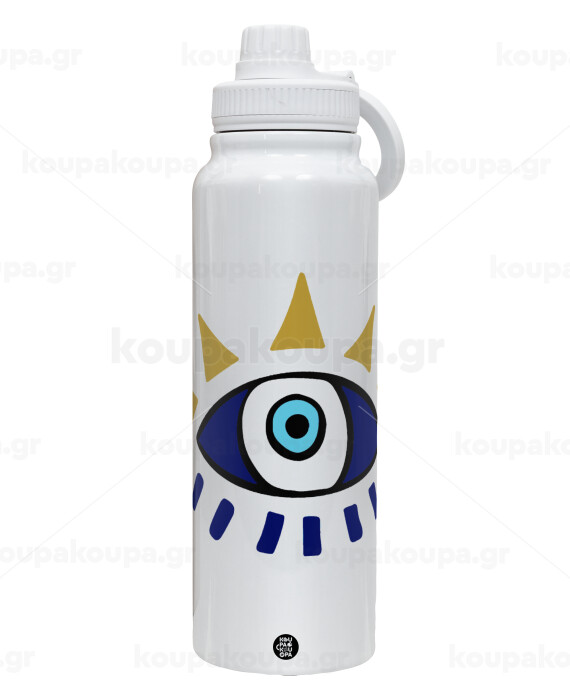 blue evil eye, 1L Stainless Steel Thermal Bottle with Phone Holder & Double Wall Insulation