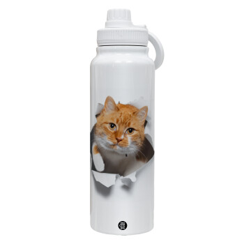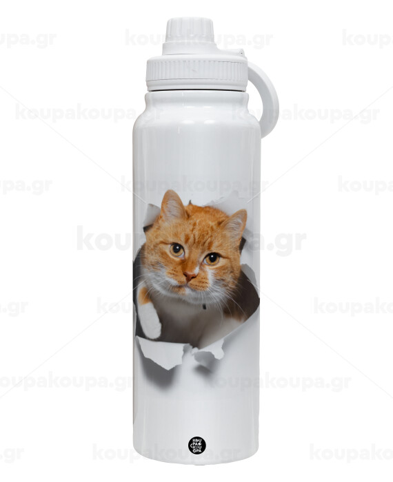 Cat cracked, 1L Stainless Steel Thermal Bottle with Phone Holder & Double Wall Insulation