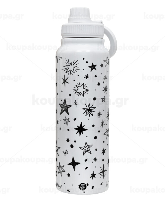 Doodle Stars, 1L Stainless Steel Thermal Bottle with Phone Holder & Double Wall Insulation