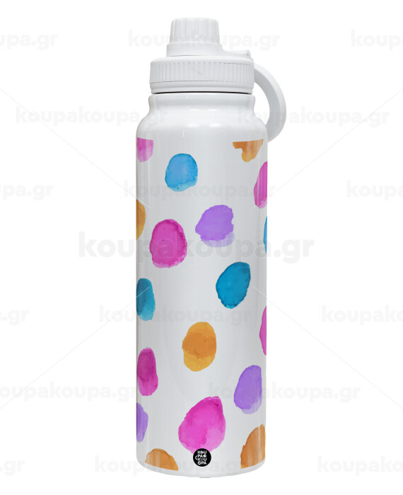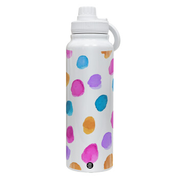 Watercolor dots, 1L Stainless Steel Thermal Bottle with Phone Holder & Double Wall Insulation