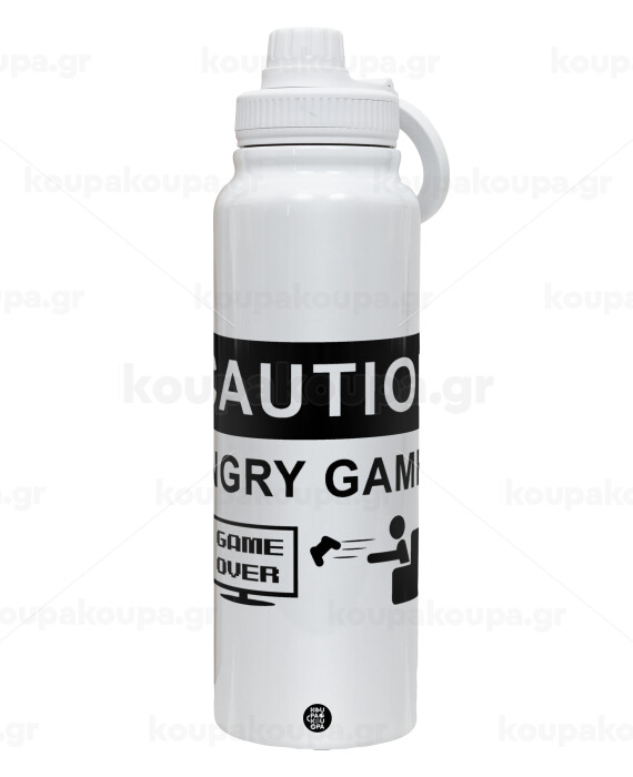 Caution, angry gamer!, 1L Stainless Steel Thermal Bottle with Phone Holder & Double Wall Insulation
