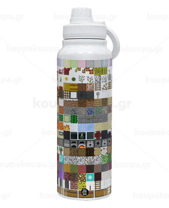 Minecraft blocks, 1L Stainless Steel Thermal Bottle with Phone Holder & Double Wall Insulation