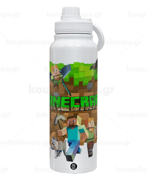 Minecraft characters, 1L Stainless Steel Thermal Bottle with Phone Holder & Double Wall Insulation