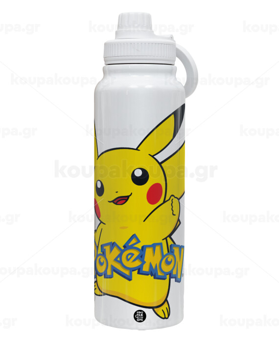 Pokemon pikachu, 1L Stainless Steel Thermal Bottle with Phone Holder & Double Wall Insulation