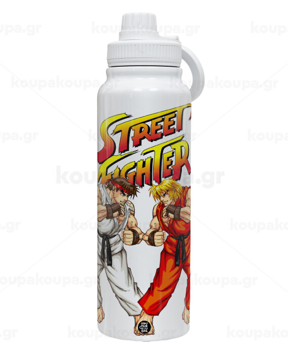 Street fighter, 1L Stainless Steel Thermal Bottle with Phone Holder & Double Wall Insulation