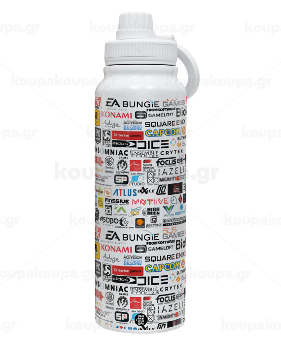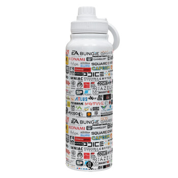 Video Game Studio Logos, 1L Stainless Steel Thermal Bottle with Phone Holder & Double Wall Insulation