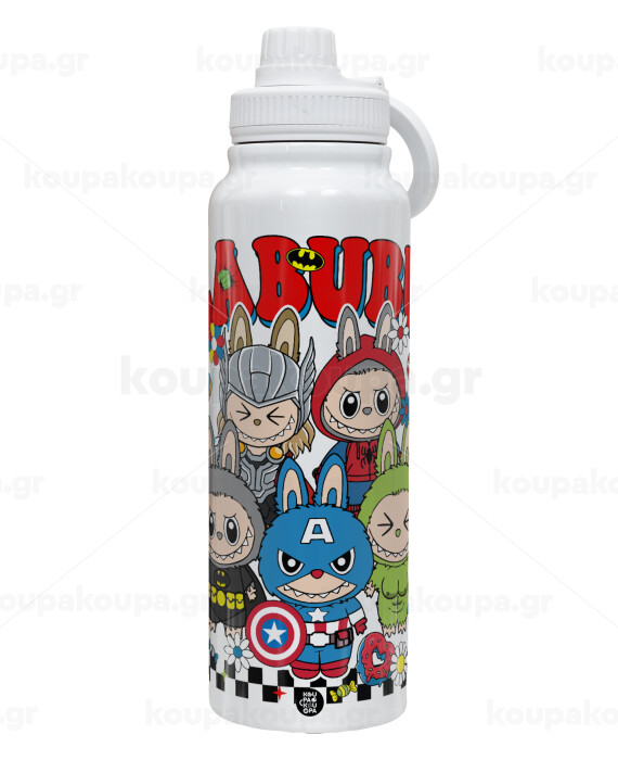 Labubu superheroes, 1L Stainless Steel Thermal Bottle with Phone Holder & Double Wall Insulation