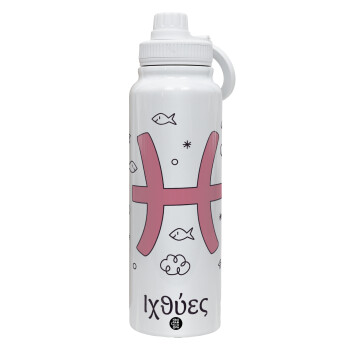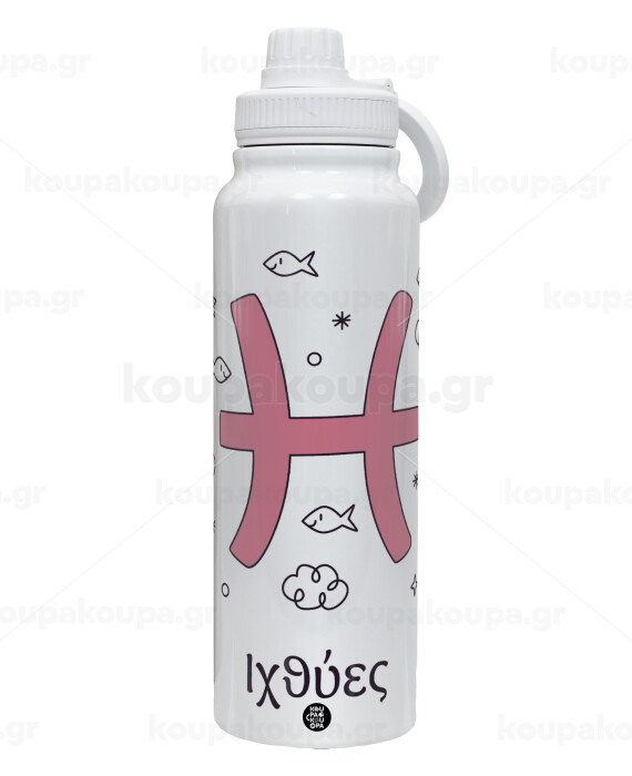 Ζώδια Ιχθύες, 1L Stainless Steel Thermal Bottle with Phone Holder & Double Wall Insulation