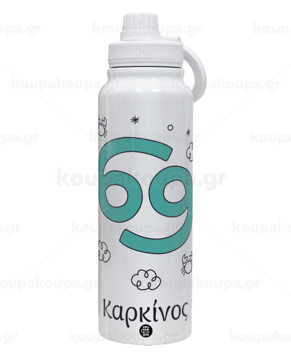 Ζώδια Καρκίνος, 1L Stainless Steel Thermal Bottle with Phone Holder & Double Wall Insulation