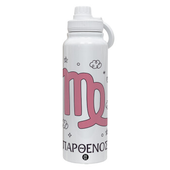 Ζώδια Παρθένος, 1L Stainless Steel Thermal Bottle with Phone Holder & Double Wall Insulation