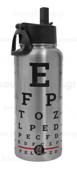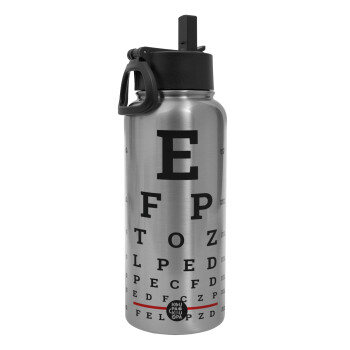 EYE test chart, Metal mug thermo Silver with Straw and Spout Lid (Stainless steel), double wall, 950ml