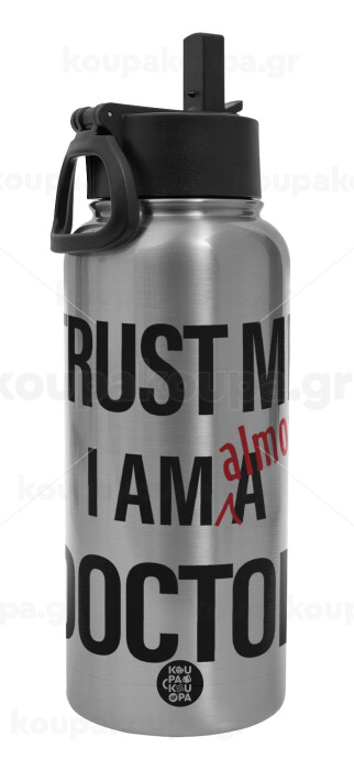 Trust me, i am (almost) Doctor, Metal mug thermo Silver with Straw and Spout Lid (Stainless steel), double wall, 950ml