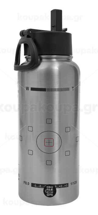 Camera viewfinder, Metal mug thermo Silver with Straw and Spout Lid (Stainless steel), double wall, 950ml
