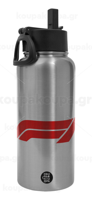 Formula 1, Metal mug thermo Silver with Straw and Spout Lid (Stainless steel), double wall, 950ml