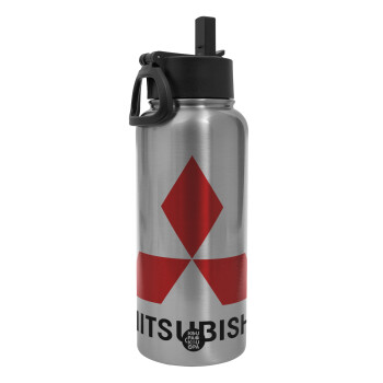 mitsubishi, Metal mug thermo Silver with Straw and Spout Lid (Stainless steel), double wall, 950ml