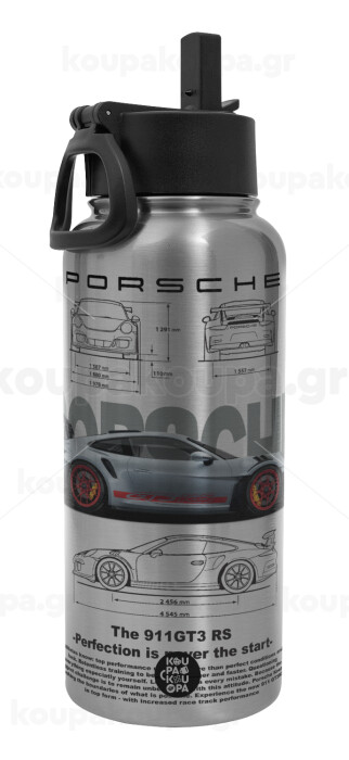Porsche, Metal mug thermo Silver with Straw and Spout Lid (Stainless steel), double wall, 950ml