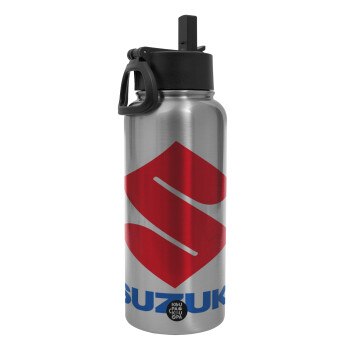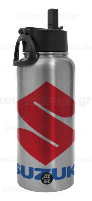 SUZUKI, Metal mug thermo Silver with Straw and Spout Lid (Stainless steel), double wall, 950ml