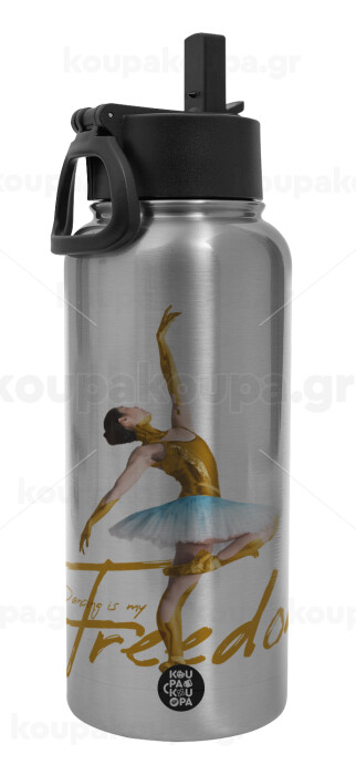 Gold Dancer, Metal mug thermo Silver with Straw and Spout Lid (Stainless steel), double wall, 950ml