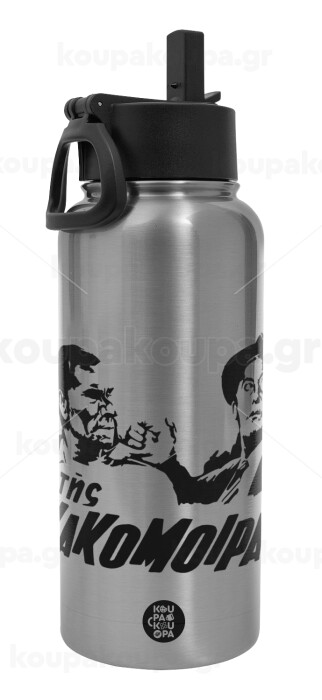 Tis kakomoiras, Metal mug thermo Silver with Straw and Spout Lid (Stainless steel), double wall, 950ml