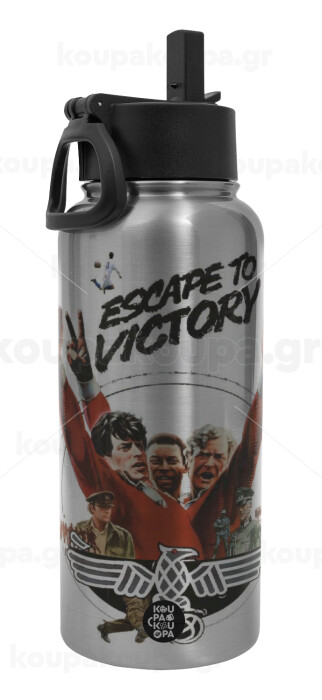 Escape to victory, Metal mug thermo Silver with Straw and Spout Lid (Stainless steel), double wall, 950ml