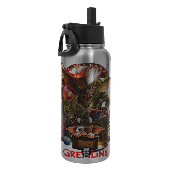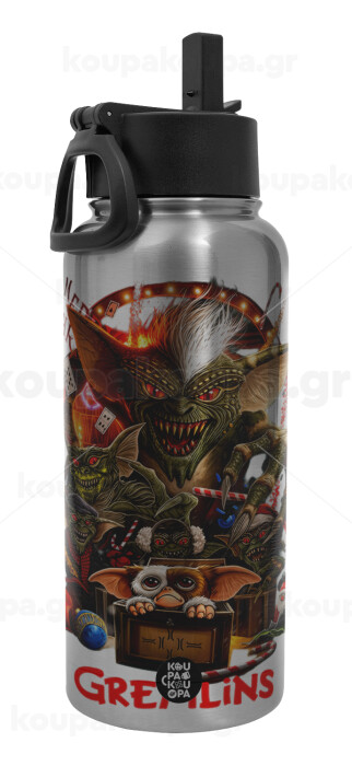 Gremlins, Metal mug thermo Silver with Straw and Spout Lid (Stainless steel), double wall, 950ml
