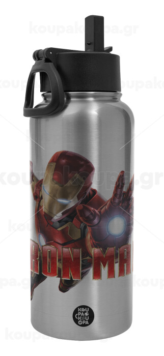 Ironman, Metal mug thermo Silver with Straw and Spout Lid (Stainless steel), double wall, 950ml