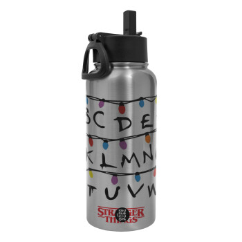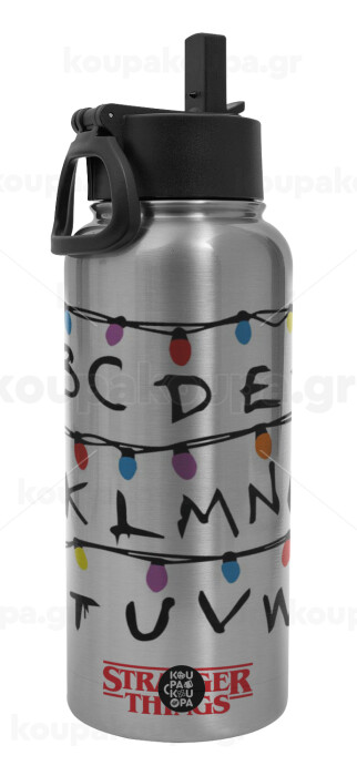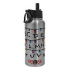 Stranger Things ABC, Metal mug thermo Silver with Straw and Spout Lid (Stainless steel), double wall, 950ml