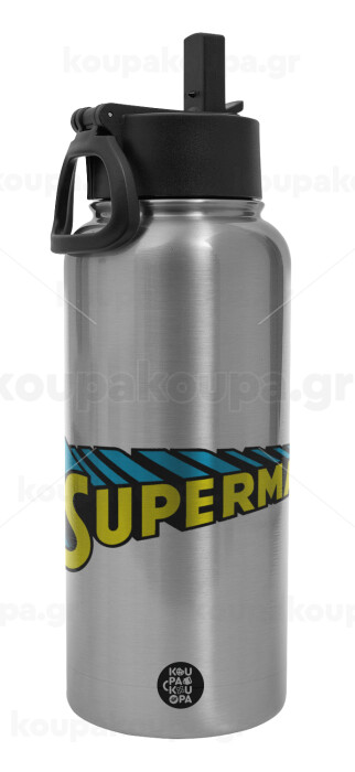 Superman vintage, Metal mug thermo Silver with Straw and Spout Lid (Stainless steel), double wall, 950ml