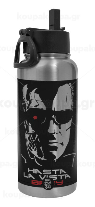 Terminator Hasta La Vista, Metal mug thermo Silver with Straw and Spout Lid (Stainless steel), double wall, 950ml