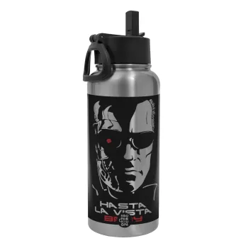 Terminator Hasta La Vista, Metal mug thermo Silver with Straw and Spout Lid (Stainless steel), double wall, 950ml