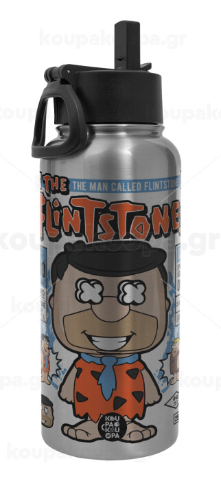 The flintstones, Metal mug thermo Silver with Straw and Spout Lid (Stainless steel), double wall, 950ml