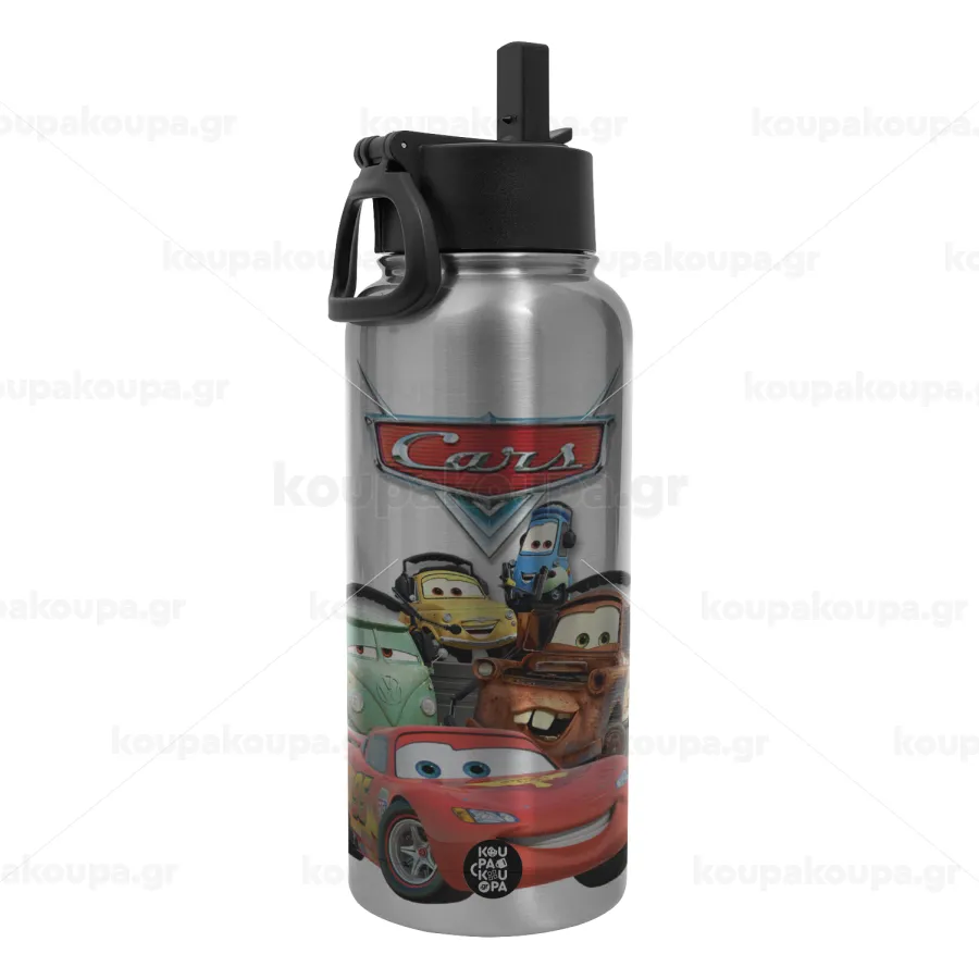 Αυτοκίνητα, Metal mug thermo Silver with Straw and Spout Lid (Stainless steel), double wall, 950ml