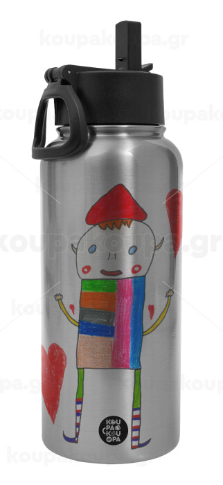 Ο Αλέξανδρος ζωγραφίζει την Αγάπη, Metal mug thermo Silver with Straw and Spout Lid (Stainless steel), double wall, 950ml