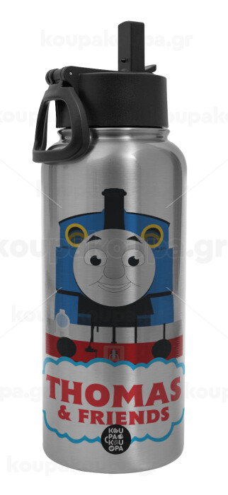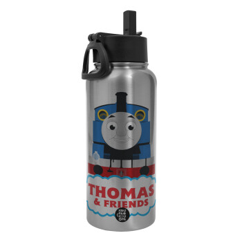 Τόμας το τρενάκι, Metal mug thermo Silver with Straw and Spout Lid (Stainless steel), double wall, 950ml