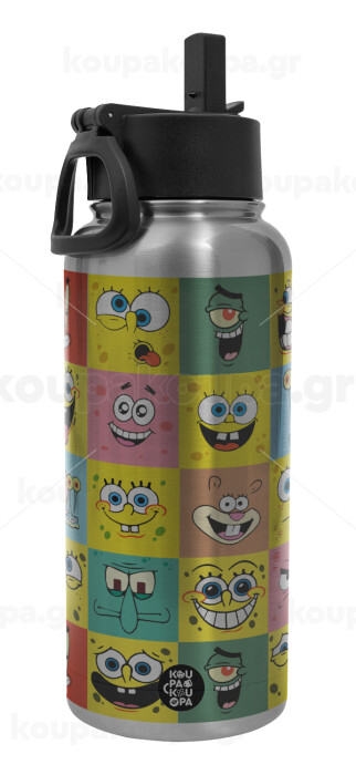 BOB spongebob and friends, Metal mug thermo Silver with Straw and Spout Lid (Stainless steel), double wall, 950ml