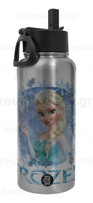 Frozen Elsa, Metal mug thermo Silver with Straw and Spout Lid (Stainless steel), double wall, 950ml