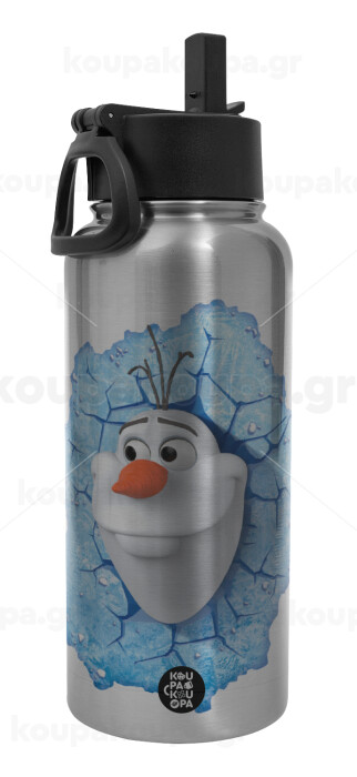 Frozen Olaf, Metal mug thermo Silver with Straw and Spout Lid (Stainless steel), double wall, 950ml