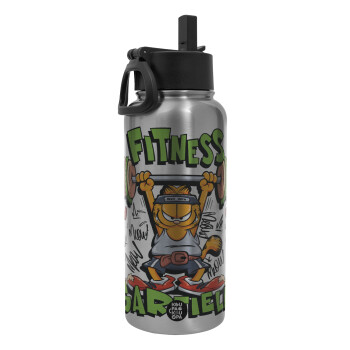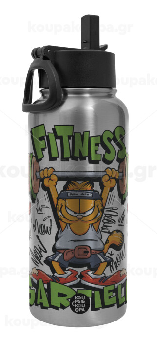 Garfield Fitness, Metal mug thermo Silver with Straw and Spout Lid (Stainless steel), double wall, 950ml