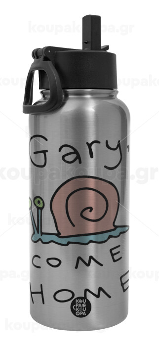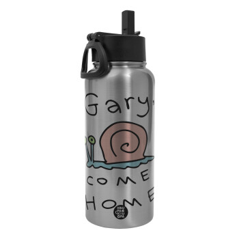 Gary come home, Metal mug thermo Silver with Straw and Spout Lid (Stainless steel), double wall, 950ml