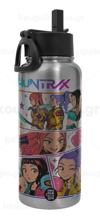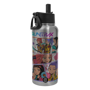 Huntrix Kpop Girls, Metal mug thermo Silver with Straw and Spout Lid (Stainless steel), double wall, 950ml
