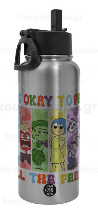 Inside Out It's Okay To Feel All The Feels , Metal mug thermo Silver with Straw and Spout Lid (Stainless steel), double wall, 950ml