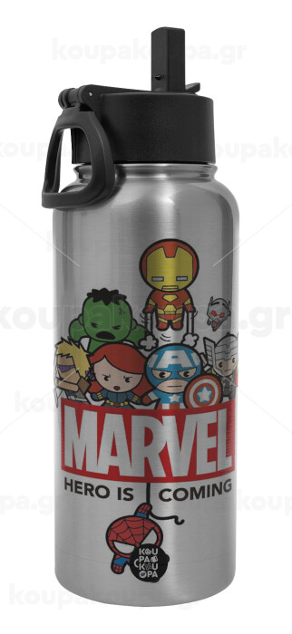 MARVEL, Metal mug thermo Silver with Straw and Spout Lid (Stainless steel), double wall, 950ml