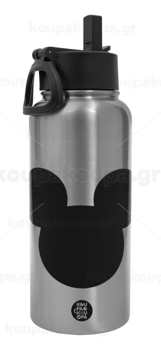 mouse man, Metal mug thermo Silver with Straw and Spout Lid (Stainless steel), double wall, 950ml