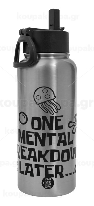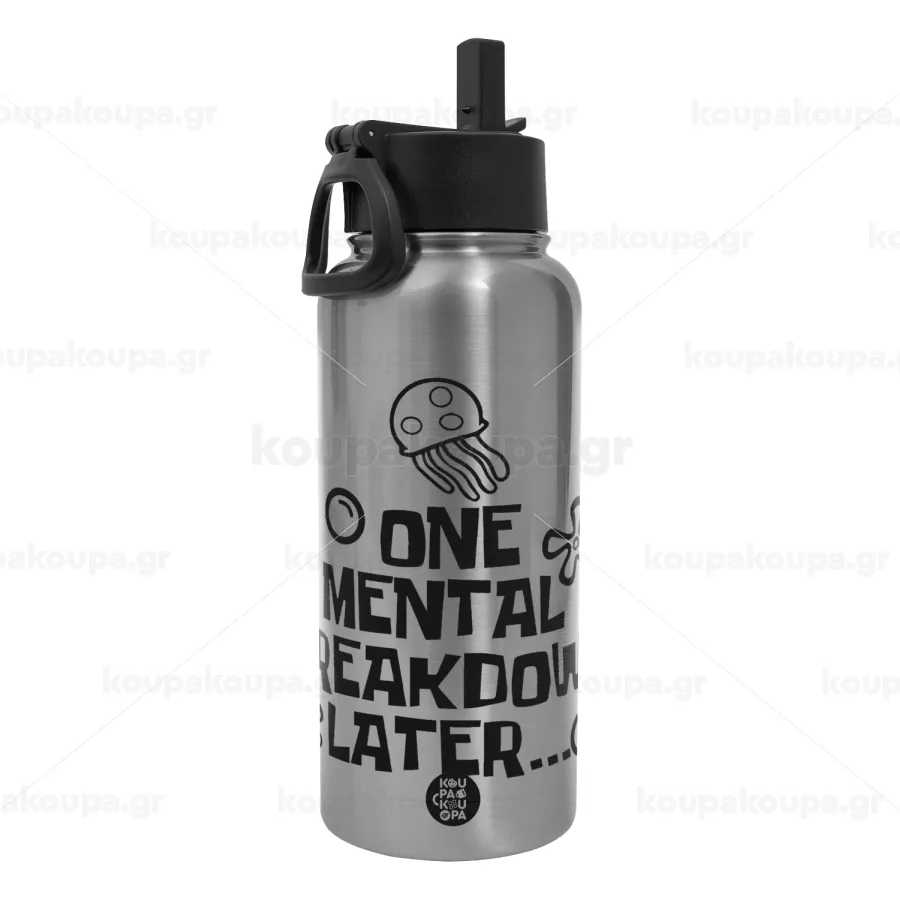 one mental breakdown later bob spongebob, Metal mug thermo Silver with Straw and Spout Lid (Stainless steel), double wall, 950ml