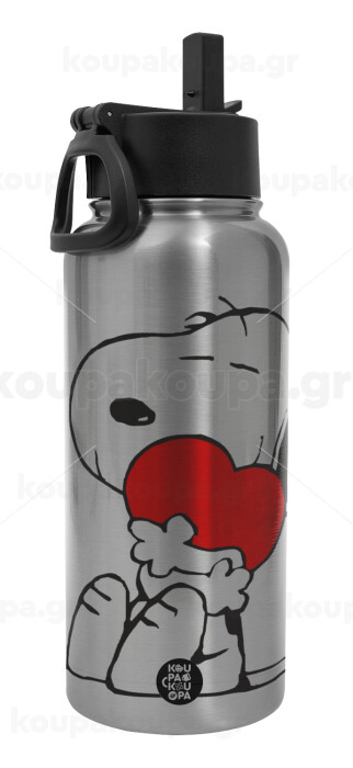 Snoopy, Metal mug thermo Silver with Straw and Spout Lid (Stainless steel), double wall, 950ml