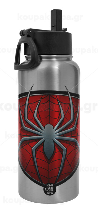 Spider-man, Metal mug thermo Silver with Straw and Spout Lid (Stainless steel), double wall, 950ml