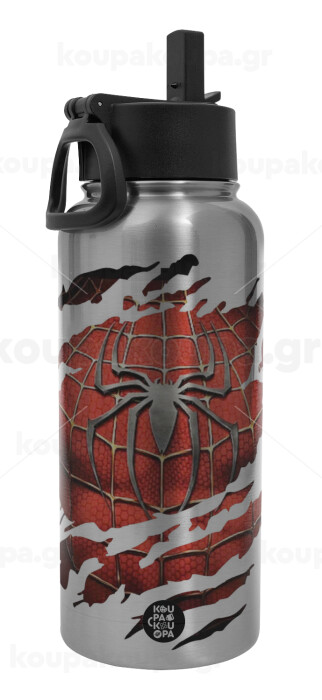 Spiderman cracked, Metal mug thermo Silver with Straw and Spout Lid (Stainless steel), double wall, 950ml