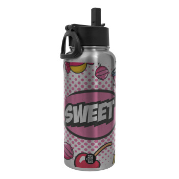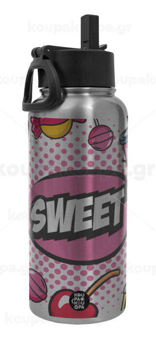 SWEET, Metal mug thermo Silver with Straw and Spout Lid (Stainless steel), double wall, 950ml