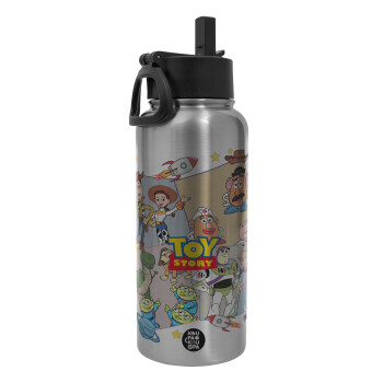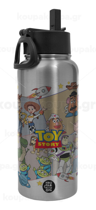 toystory characters, Metal mug thermo Silver with Straw and Spout Lid (Stainless steel), double wall, 950ml