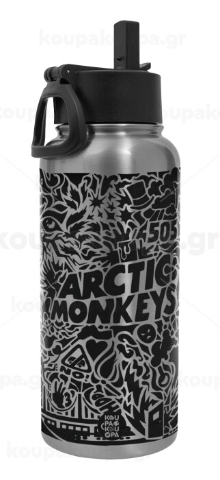 Arctic Monkeys, Metal mug thermo Silver with Straw and Spout Lid (Stainless steel), double wall, 950ml